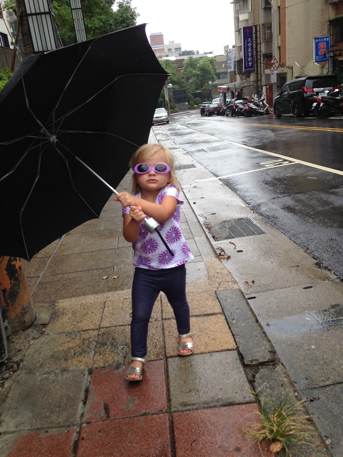 Cora goes to Ms. Maria's class everyday. We had a few off days last week, but I think it's because she is worried she is going to miss out on doing something fun with me, Mabel, and Edith. I don't know how to assure her that painting with milk on bread and going to gymnastics is way more fun than sweeping the floor at home. She does love it, but she's also said that she likes going to school sometimes, just not everyday. It IS too much for her little self. That's just kind of the way things roll here, though. School is Monday through Friday 8:30-2:40 with and extra hour-long Mandarin class on Mondays and Wednesdays. When I go to pick her up, she is slippery with sweat from their afternoon recess and is never excited about the 15 minute walk home, uphill, in th 95+ degree weather. Fair enough. I'll give it to you Cora. So, with ALL 3 girls on the double stroller, I HIKE up that hill at a 45 degree angle. It's good for my character.